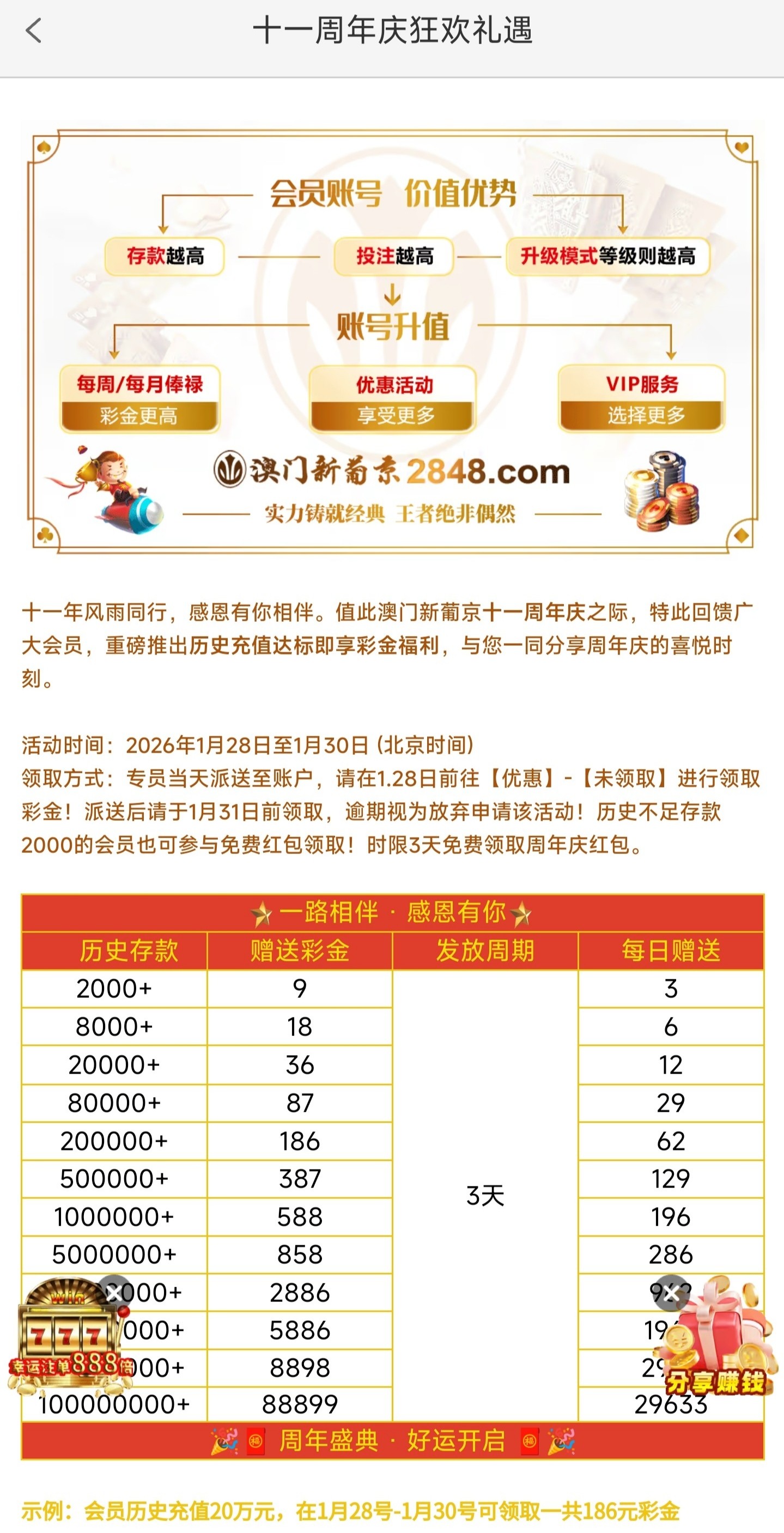 历史充值过2000以上的兄弟可以去领取一下这个彩金连送三天
